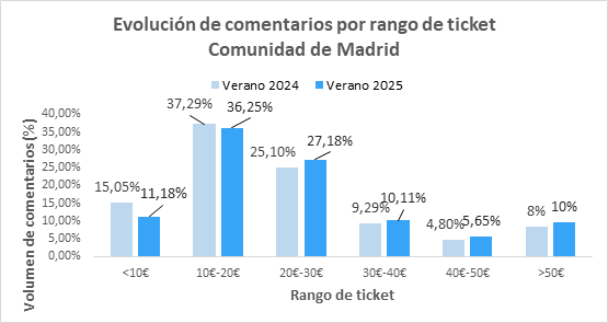 Pero el sector, a pesar de afrontar esta bajada de clientes y rentabilidad, muestra una notable capacidad de adaptación a las preferencias de los consumidores digitales. Así lo demuestra el informe anual de la campaña de verano encargado por Hostelería Madrid a la consultora Delectatech, basado en más de 374.996 comentarios de directorios online registrados en los meses de julio y agosto en los establecimientos de la Comunidad de Madrid.