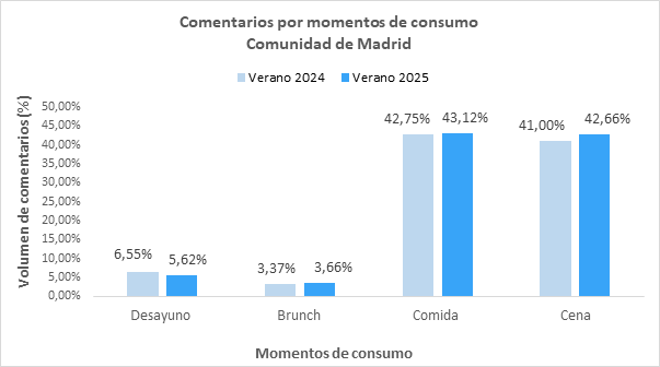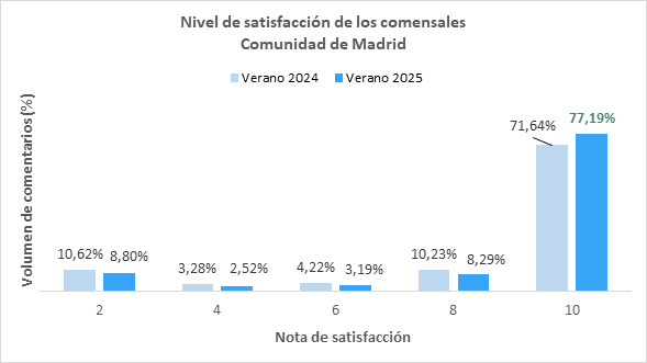 Según el informe, el sector de la restauración de la Comunidad de Madrid ha mostrado un dinamismo particular durante el verano de 2025 consolidando tendencias como el brunch y alcanzado un excelente nivel de satisfacción en los usuarios. Por el contrario, el propio informe registra un descenso del 6,3% del censo de locales analizados (que pasan de 20.367 del año 2024 a 19.080 en el año 2025), lo que puede ser un indicador de mayor cierre de locales durante este verano respecto al anterior.